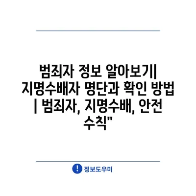 범죄자 정보 알아보기| 지명수배자 명단과 확인 방법 | 범죄자, 지명수배, 안전 수칙”