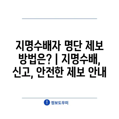 지명수배자 명단 제보 방법은? | 지명수배, 신고, 안전한 제보 안내