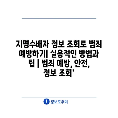 지명수배자 정보 조회로 범죄 예방하기| 실용적인 방법과 팁 | 범죄 예방, 안전, 정보 조회’