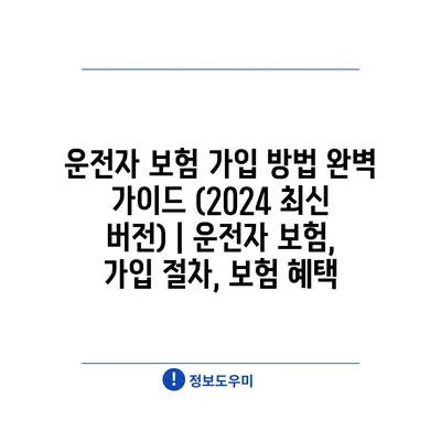 운전자 보험 가입 방법 완벽 가이드 (2024 최신 버전) | 운전자 보험, 가입 절차, 보험 혜택