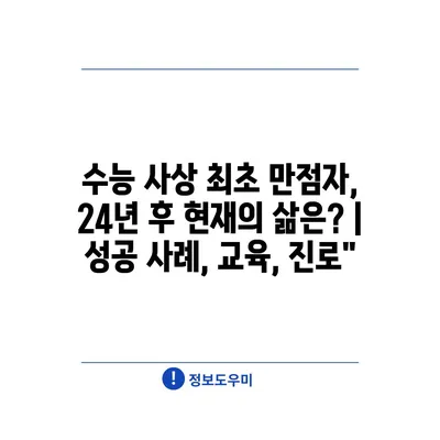 수능 사상 최초 만점자, 24년 후 현재의 삶은? | 성공 사례, 교육, 진로”