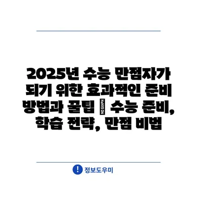 2025년 수능 만점자가 되기 위한 효과적인 준비 방법과 꿀팁 | 수능 준비, 학습 전략, 만점 비법