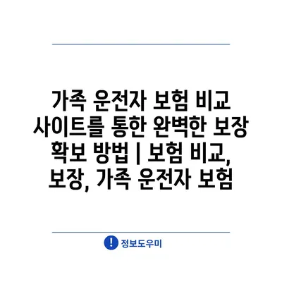 가족 운전자 보험 비교 사이트를 통한 완벽한 보장 확보 방법 | 보험 비교, 보장, 가족 운전자 보험