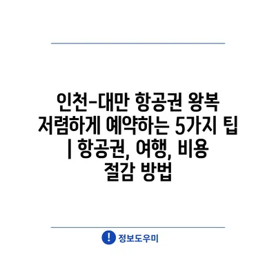 인천-대만 항공권 왕복 저렴하게 예약하는 5가지 팁 | 항공권, 여행, 비용 절감 방법
