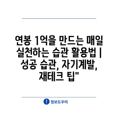 연봉 1억을 만드는 매일 실천하는 습관 활용법 | 성공 습관, 자기계발, 재테크 팁”