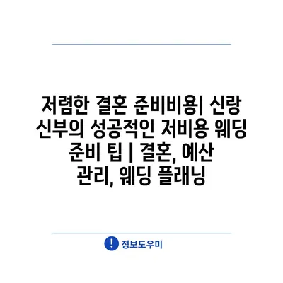 저렴한 결혼 준비비용| 신랑 신부의 성공적인 저비용 웨딩 준비 팁 | 결혼, 예산 관리, 웨딩 플래닝