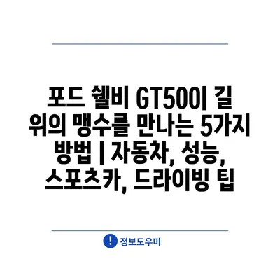 포드 쉘비 GT500| 길 위의 맹수를 만나는 5가지 방법 | 자동차, 성능, 스포츠카, 드라이빙 팁