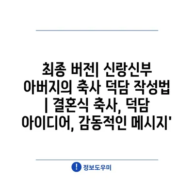 최종 버전| 신랑신부 아버지의 축사 덕담 작성법 | 결혼식 축사, 덕담 아이디어, 감동적인 메시지’