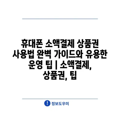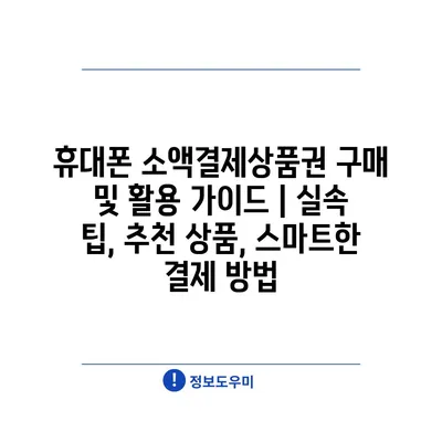 휴대폰 소액결제상품권 구매 및 활용 가이드 | 실속 팁, 추천 상품, 스마트한 결제 방법