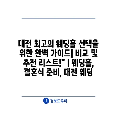 대전 최고의 웨딩홀 선택을 위한 완벽 가이드| 비교 및 추천 리스트!” | 웨딩홀, 결혼식 준비, 대전 웨딩