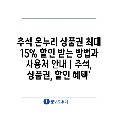 추석 온누리 상품권 최대 15% 할인 받는 방법과 사용처 안내 | 추석, 상품권, 할인 혜택’