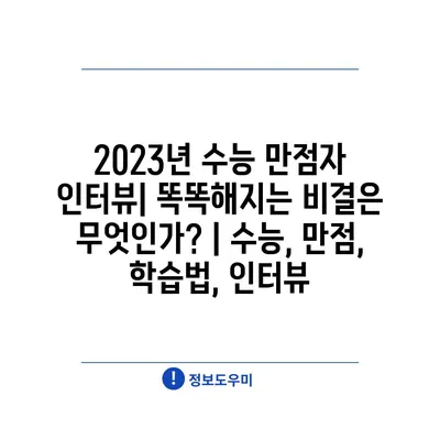 2023년 수능 만점자 인터뷰| 똑똑해지는 비결은 무엇인가? | 수능, 만점, 학습법, 인터뷰
