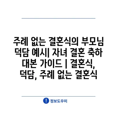 주례 없는 결혼식의 부모님 덕담 예시| 자녀 결혼 축하 대본 가이드 | 결혼식, 덕담, 주례 없는 결혼식