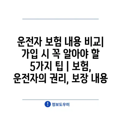 운전자 보험 내용 비교| 가입 시 꼭 알아야 할 5가지 팁 | 보험, 운전자의 권리, 보장 내용