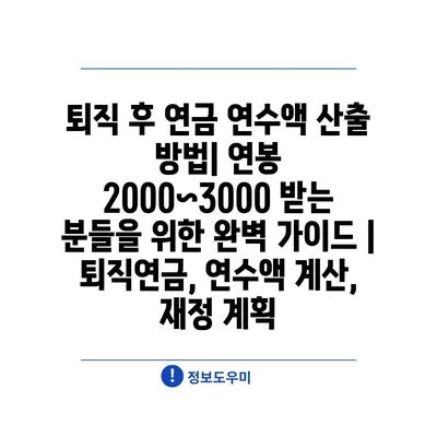 퇴직 후 연금 연수액 산출 방법| 연봉 2000~3000 받는 분들을 위한 완벽 가이드 | 퇴직연금, 연수액 계산, 재정 계획